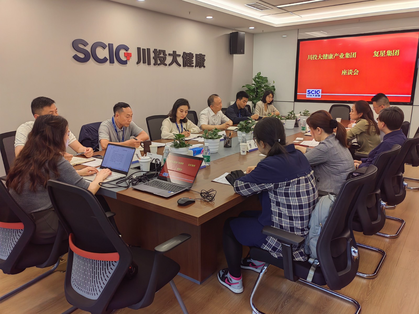 5月29日,復(fù)星集團(tuán)總裁助理、康養(yǎng)產(chǎn)業(yè)發(fā)展委員會(huì)主任紀(jì)瓊驍一行到訪川投大健康產(chǎn)業(yè)集團(tuán)開展交流座談。川投集團(tuán)黨委委員朱莉參加座談,川投大健康產(chǎn)業(yè)集團(tuán)黨委書記、董事長(zhǎng)、總經(jīng)理魯洪斌主持會(huì)議。