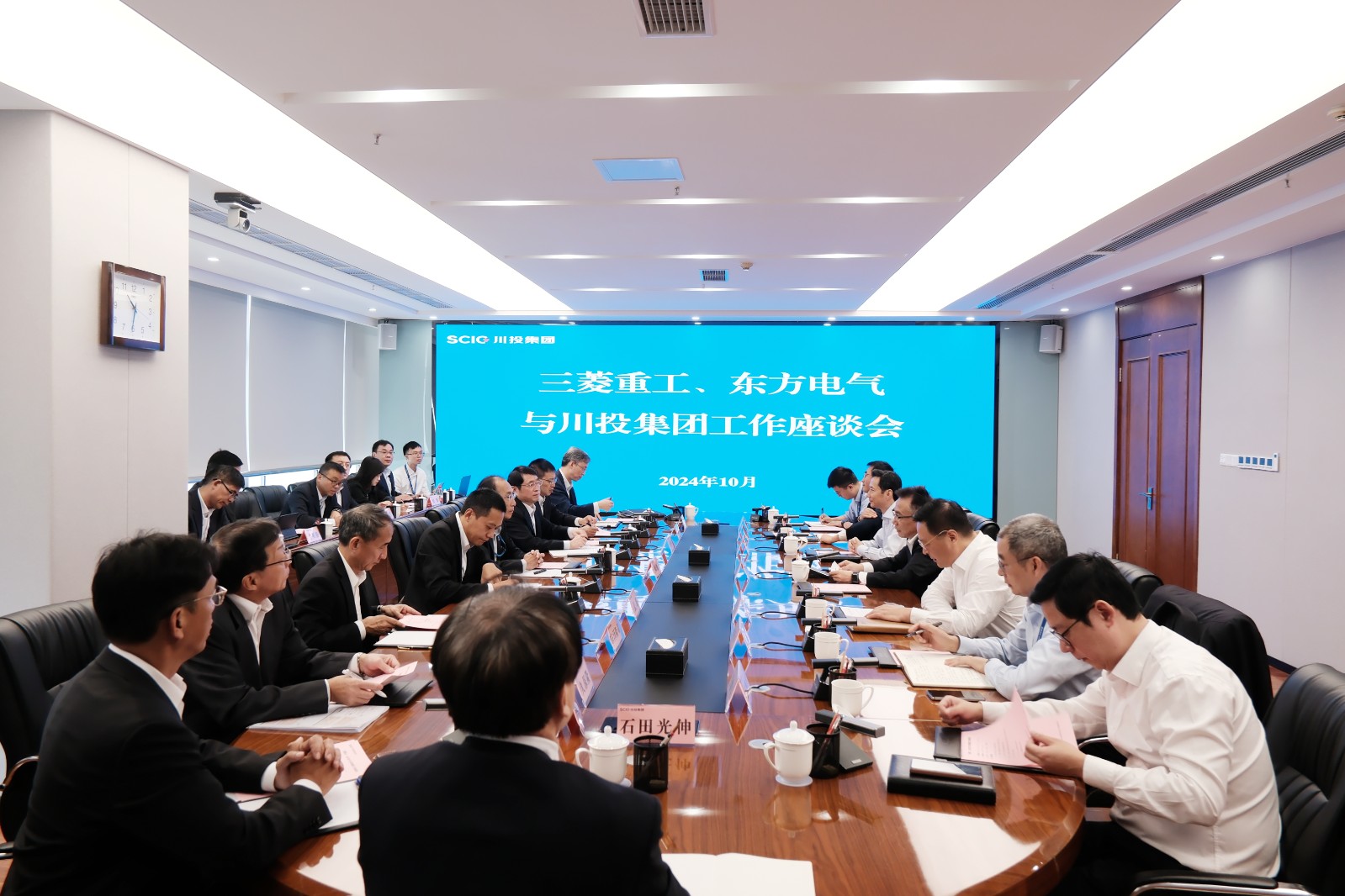 三菱重工能源集團副總裁東澤隆司,三菱重工中國總代表久保隆;三菱動力(中國)投資有限公司副董事長、總經(jīng)理石田光伸;東方電氣集團東方汽輪機有限公司黨委副書記、總經(jīng)理陳仲明;三菱重工東方燃?xì)廨啓C(廣州)有限公司總經(jīng)理川上正尚;集團公司副總經(jīng)理張昊以及三菱重工能源集團、三菱動力(中國)投資有限公司、東方電氣、東方汽輪機以及川投集團、川投燃電、川投新能源相關(guān)負(fù)責(zé)同志參加會議。