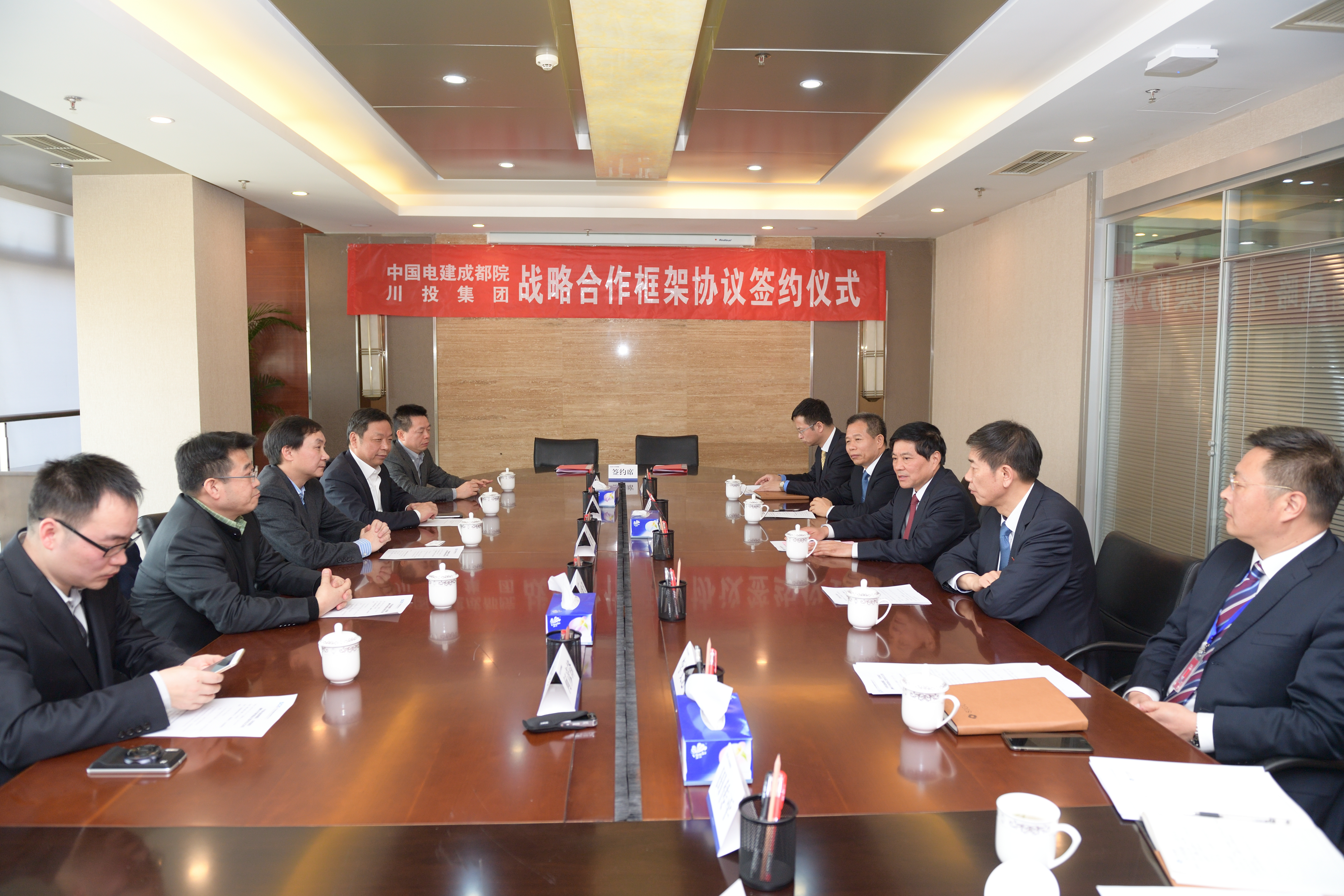 2017年1月13日上午,川投集團(tuán)與中國(guó)電建集團(tuán)成都勘測(cè)設(shè)計(jì)研究院有限公司(簡(jiǎn)稱中國(guó)電建成都院)戰(zhàn)略合作框架協(xié)議在集團(tuán)2311會(huì)議室舉行。中電建成都院執(zhí)行董事、總經(jīng)理、黨委副書記黃河,集團(tuán)公司黨委書記、董事長(zhǎng)出席簽約儀式并致辭。簽約儀式由集團(tuán)公司黨委副書記、副董事長(zhǎng)、總經(jīng)理主持。