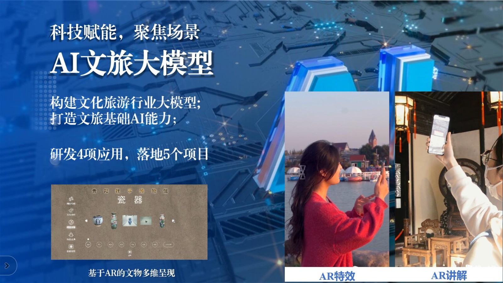 智勝集成視覺融合場(chǎng)景體驗(yàn)文化和旅游部技術(shù)創(chuàng)新中心相關(guān)負(fù)責(zé)人介紹了公司的基本情況和主營(yíng)業(yè)務(wù),特別強(qiáng)調(diào)了公司在政企數(shù)字化和智慧文旅領(lǐng)域的核心競(jìng)爭(zhēng)力,展示了技術(shù)創(chuàng)新中心在視覺融合技術(shù)、文旅大模型以及人工智能方面的應(yīng)用和建設(shè)成果。此外,還分享了公司在智慧景區(qū)、世界文化遺產(chǎn)監(jiān)測(cè)等方面的業(yè)務(wù)布局和發(fā)展計(jì)劃,提出了通過(guò)慧旅云平臺(tái)來(lái)培育新質(zhì)生產(chǎn)力,通過(guò)數(shù)字化手段提升國(guó)有企業(yè)管理和服務(wù)效率的策略方案。